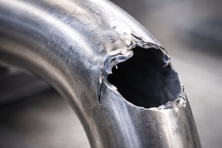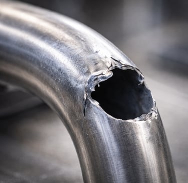 Büküm sırasında dış radyusta oluşan yüksek çekme gerilmeleri nedeniyle et kalınlığının kritik seviyenin altına düşmesi veya malzeme bütünlüğünün bozulmasıdır.